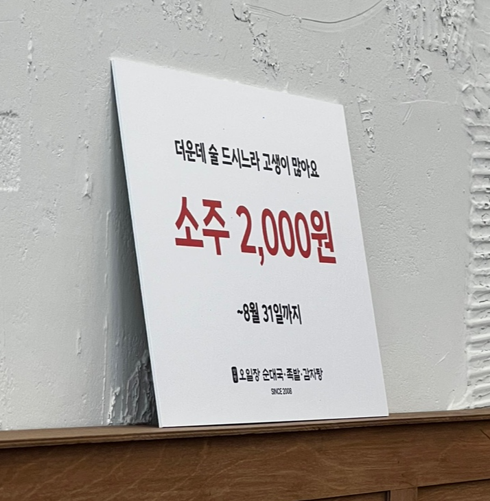 근데, 작은 간판으로 소주 2000원 8월 31일까지.....