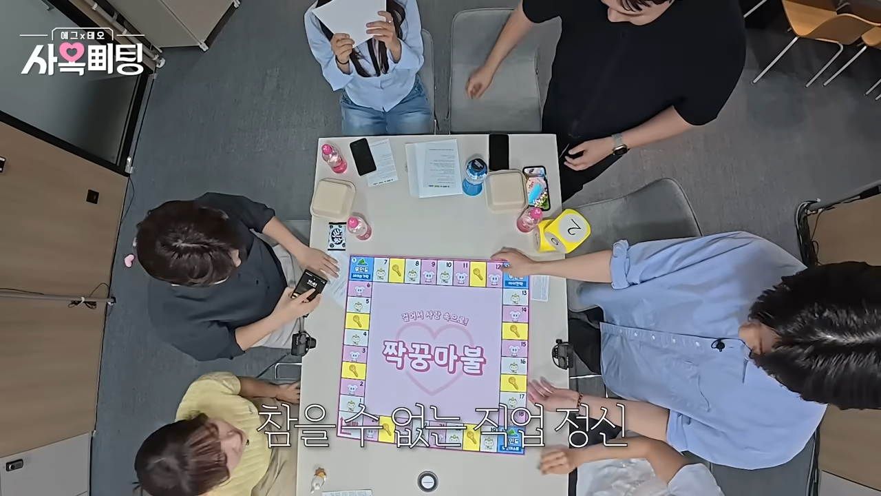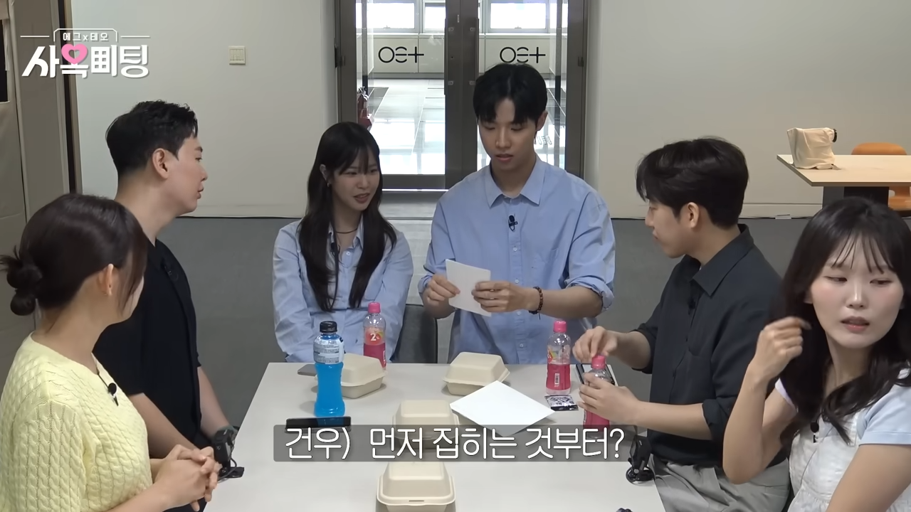 가위바위보로 순서를 정하고 자리 선택이 끝난 뒤, 자연스럽게 첫 만남이 이어집니다. 참가자들은 자기 이름과 연차를 소개하며 풋풋한 분위기를 만들었죠. 이 장면에서부터 사옥미팅의 매력이 슬슬 드러납니다.