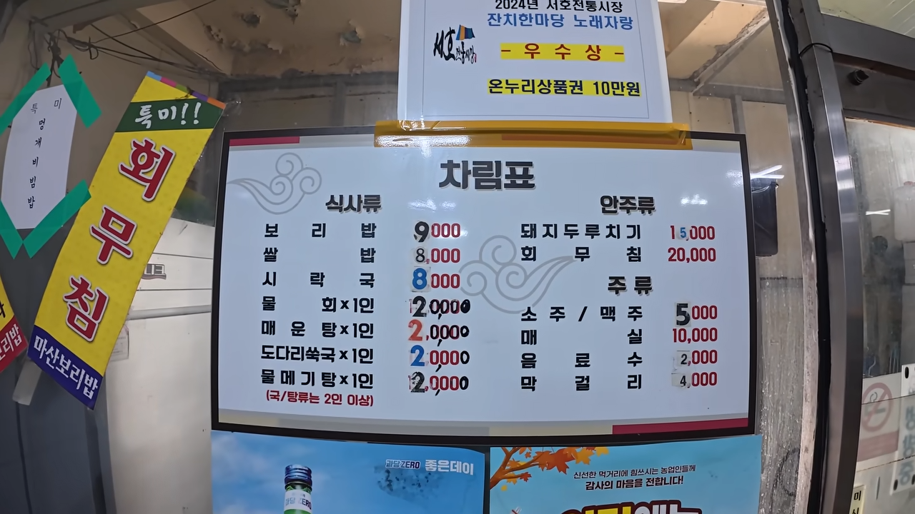 - 회무침: 20,000원
