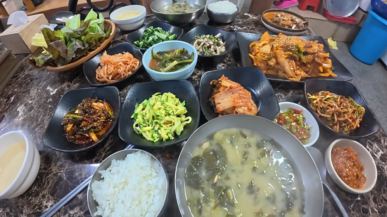 특히나 반찬 하나하나가 정성이 가득 담겨 있어서, 단순히 많은 게 아니라 맛있는 반찬이라는 게 핵심! 아삭한 열무김치, 달큰한 호박볶음, 칼칼한 무생채, 고소한 참나물 무침 등 어느 하나 빠지는 게 없어요.
