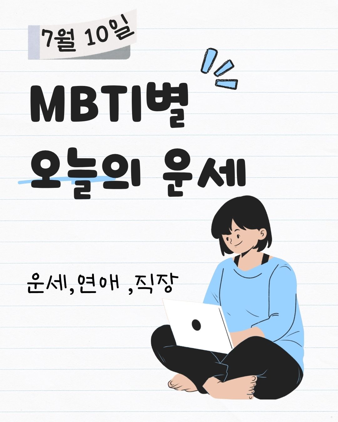 안녕하세요~ 😊 2025년 7월 10일(오늘)의 MBTI별 운세, 준비했어요! 편하고 발랄한 느낌으로, 각 성격 유형에 딱 맞는 하루 팁도 있어요!